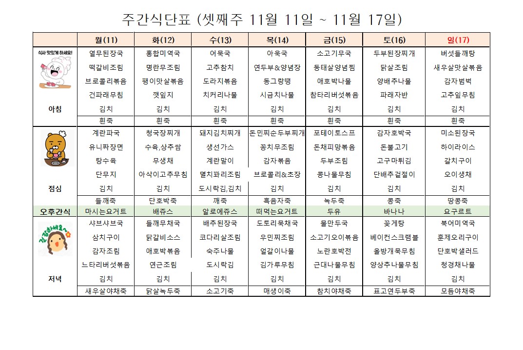 ÇູÇѸ¶À» 11¿ù ¼Â°ÁÖ ½Ä´ÜÇ¥ÀÔ´Ï´Ù