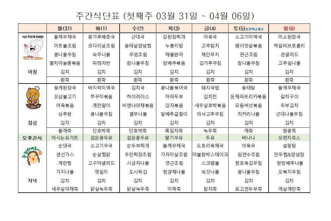 ÇູÇѸ¶À» 4¿ù ù°ÁÖ ½Ä´ÜÇ¥ÀÔ´Ï´Ù.