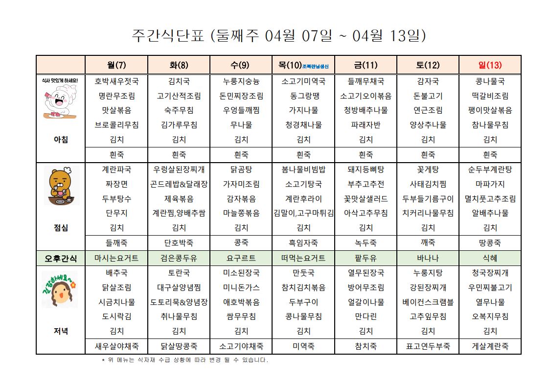 ÇູÇѸ¶À» 4¿ù µÑ°ÁÖ ½Ä´ÜÇ¥ÀÔ´Ï´Ù.