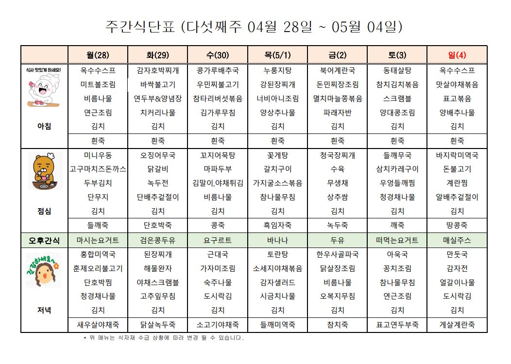ÇູÇѸ¶À» 4¿ù ¸¶Áö¸·ÁÖ ½Ä´ÜÇ¥ÀÔ´Ï´Ù.