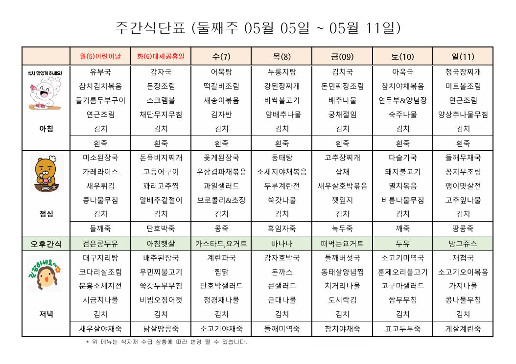 ÇູÇѸ¶À» 5¿ù µÑ°ÁÖ ½Ä´ÜÇ¥ÀÔ´Ï´Ù.