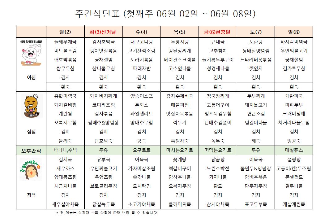 ÇູÇѸ¶À» 6¿ù ù°ÁÖ ½Ä´ÜÇ¥ÀÔ´Ï´Ù.