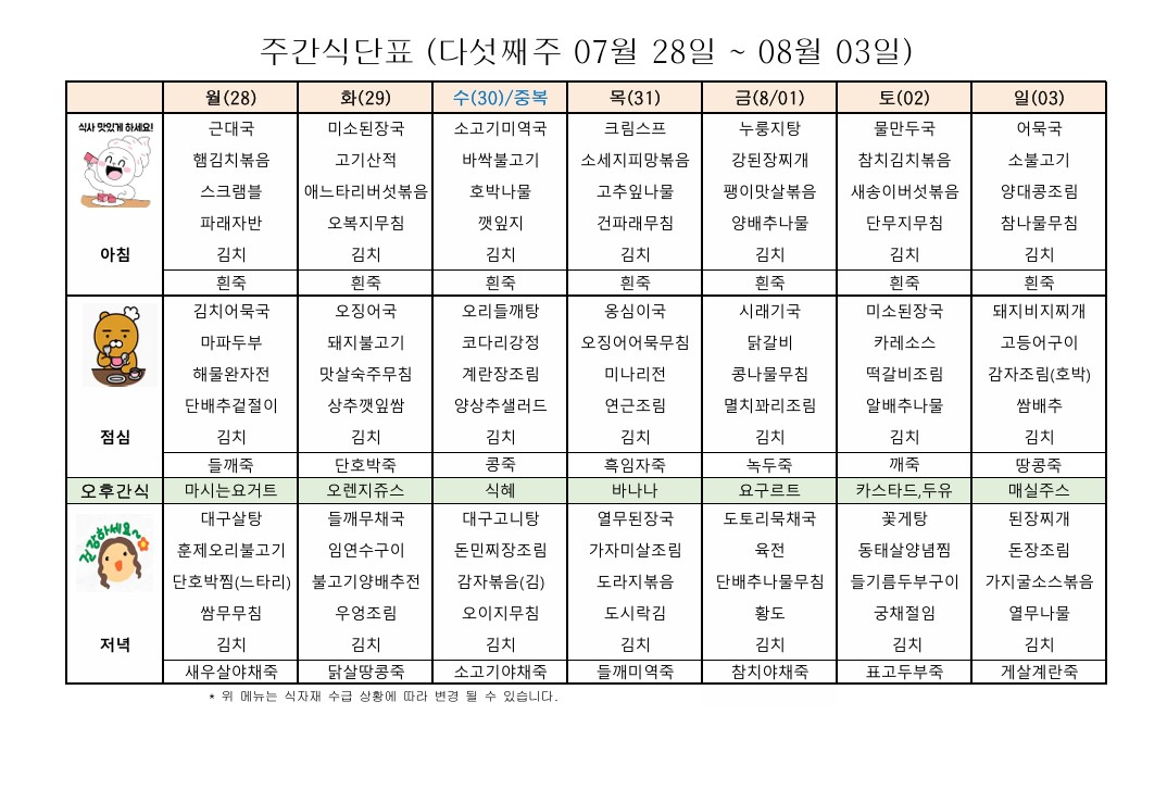 ÇູÇѸ¶À» 7¿ù ´Ù¼¸Â°ÁÖ ½Ä´ÜÇ¥ÀÔ´Ï´Ù.