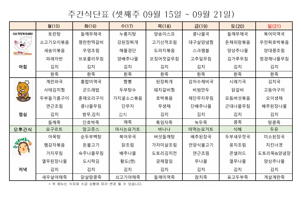 ÇູÇѸ¶À» 9¿ù ¼Â°ÁÖ ½Ä´ÜÇ¥ÀÔ´Ï´Ù.
