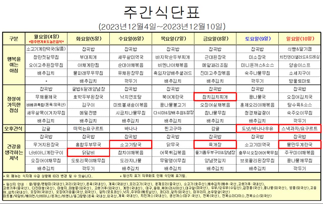 12¿ù1°ÁÖ ½Ä´ÜÇ¥ÀÔ´Ï´Ù.
