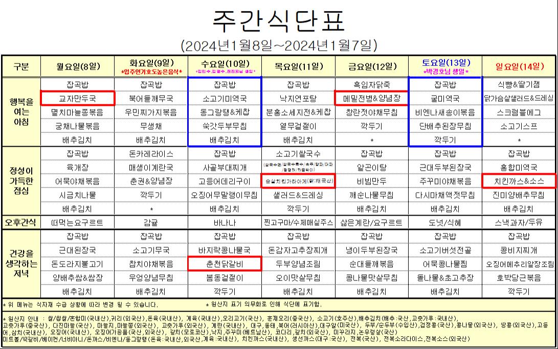 1¿ù 2°ÁÖ ½Ä´ÜÇ¥ ÀÔ´Ï´Ù.