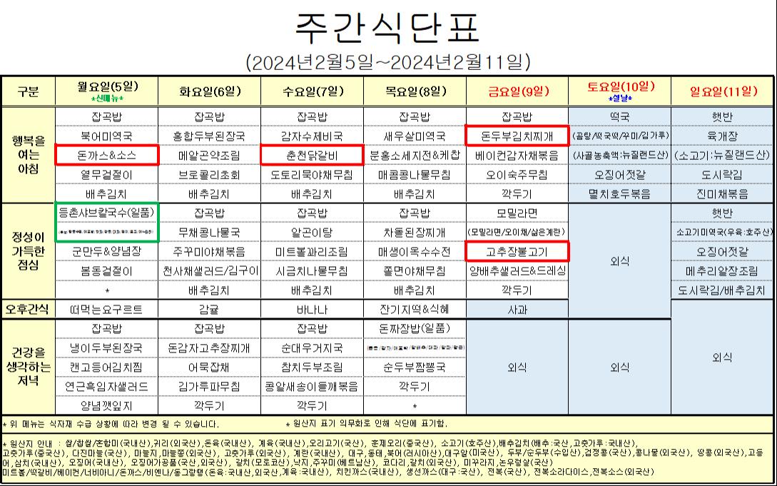 2¿ù 1°ÁÖ ½Ä´ÜÇ¥ÀÔ´Ï´Ù.