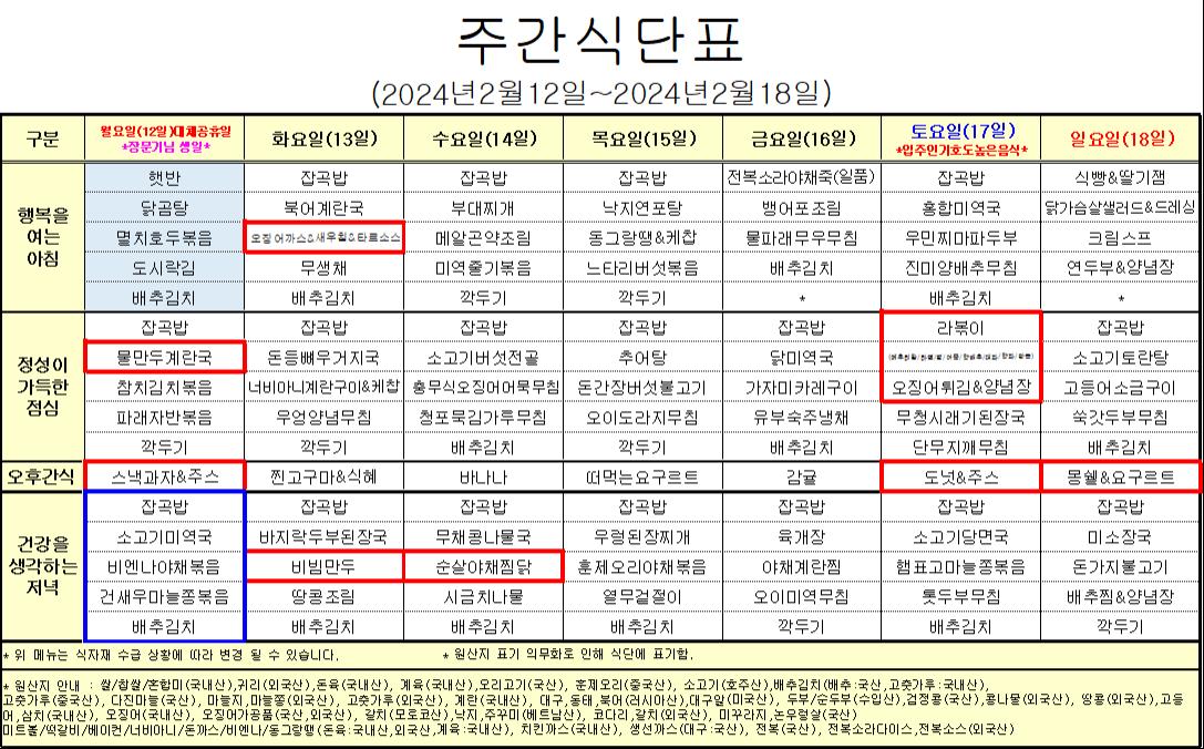 2¿ù 2°ÁÖ ½Ä´ÜÇ¥ ÀÔ´Ï´Ù.