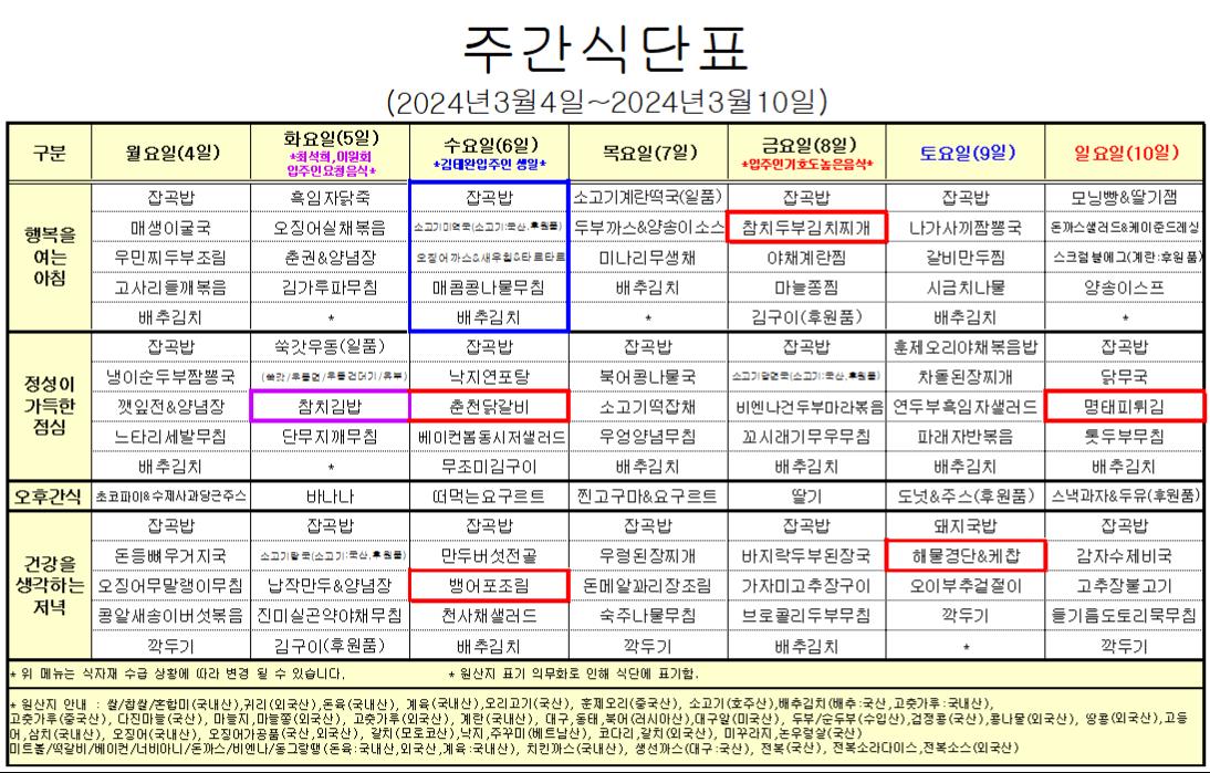 3¿ù 1°ÁÖ ½Ä´ÜÇ¥ ÀÔ´Ï´Ù.