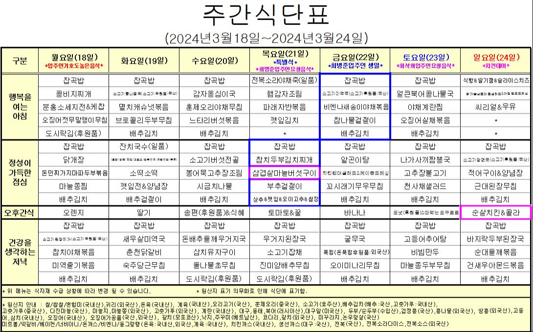 3¿ù 3°ÁÖ ½Ä´ÜÇ¥ ÀÔ´Ï´Ù.