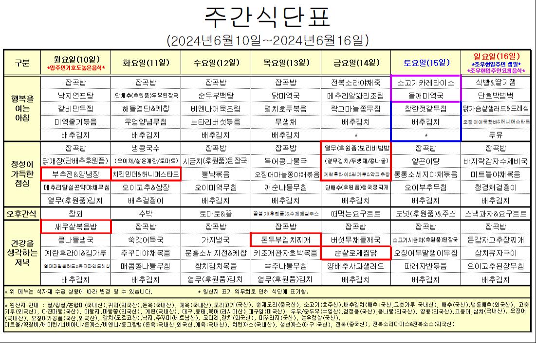 6¿ù 2°ÁÖ ½Ä´ÜÇ¥ ÀÔ´Ï´Ù.