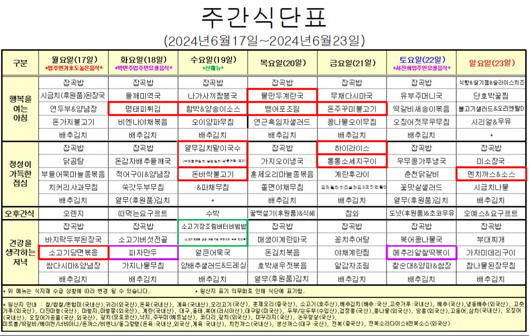 6¿ù3°ÁÖ ½Ä´ÜÇ¥ÀÔ´Ï´Ù.