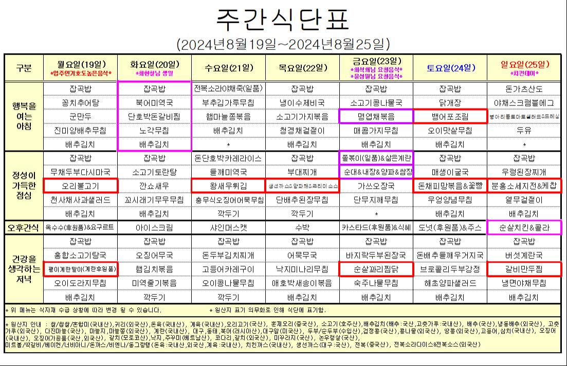 8¿ù 3°ÁÖ ½Ä´ÜÇ¥ÀÔ´Ï´Ù.