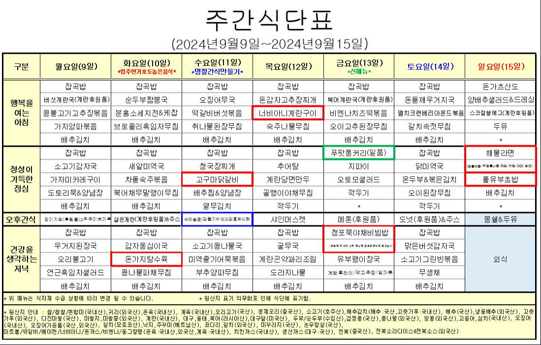 9¿ù 2°ÁÖ ½Ä´ÜÇ¥ ÀÔ´Ï´Ù.