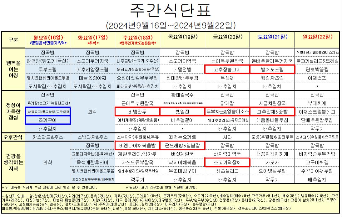 9¿ù 3°ÁÖ ½Ä´ÜÇ¥ ÀÔ´Ï´Ù.