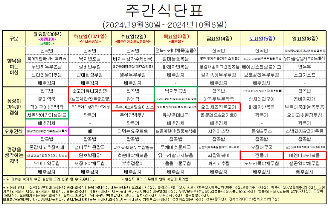 10¿ù 1°ÁÖ ½Ä´ÜÇ¥ÀÔ´Ï´Ù.