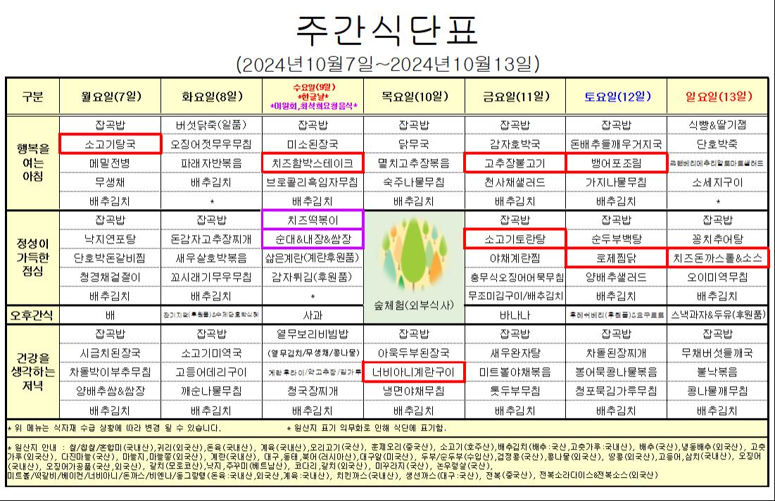 10¿ù 2°ÁÖ ½Ä´ÜÇ¥ ÀÔ´Ï´Ù.