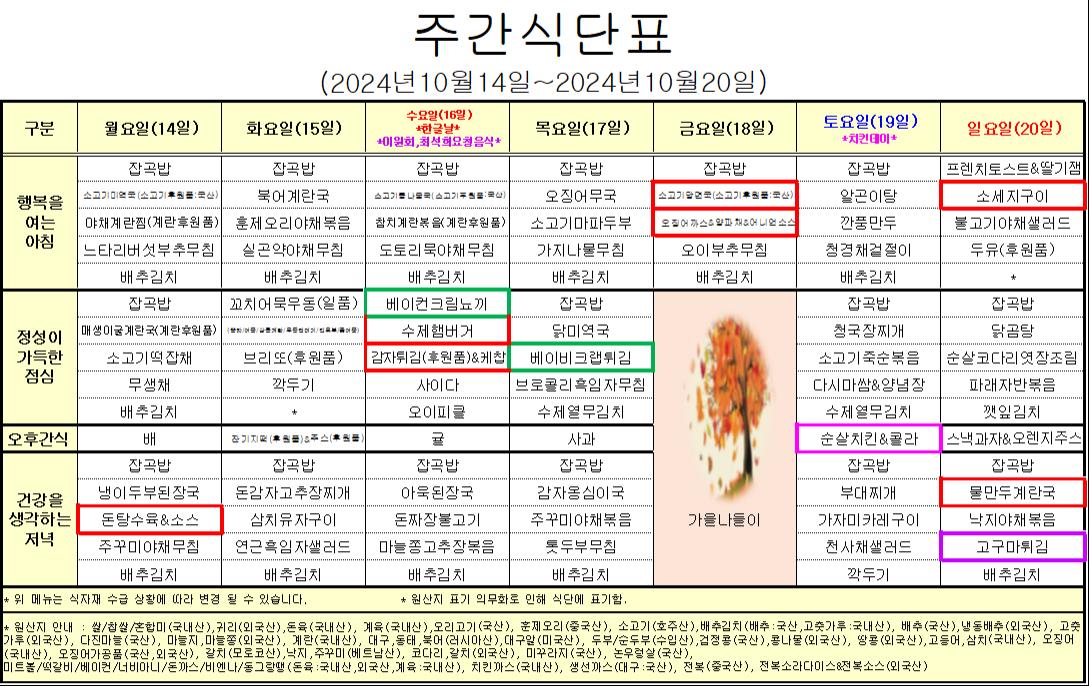 10¿ù 3°ÁÖ ½Ä´ÜÇ¥ÀÔ´Ï´Ù.