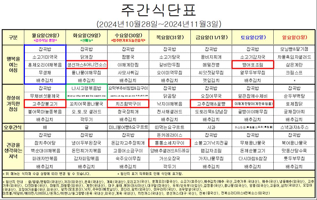 10¿ù 5°ÁÖ ½Ä´ÜÇ¥ÀÔ´Ï´Ù.