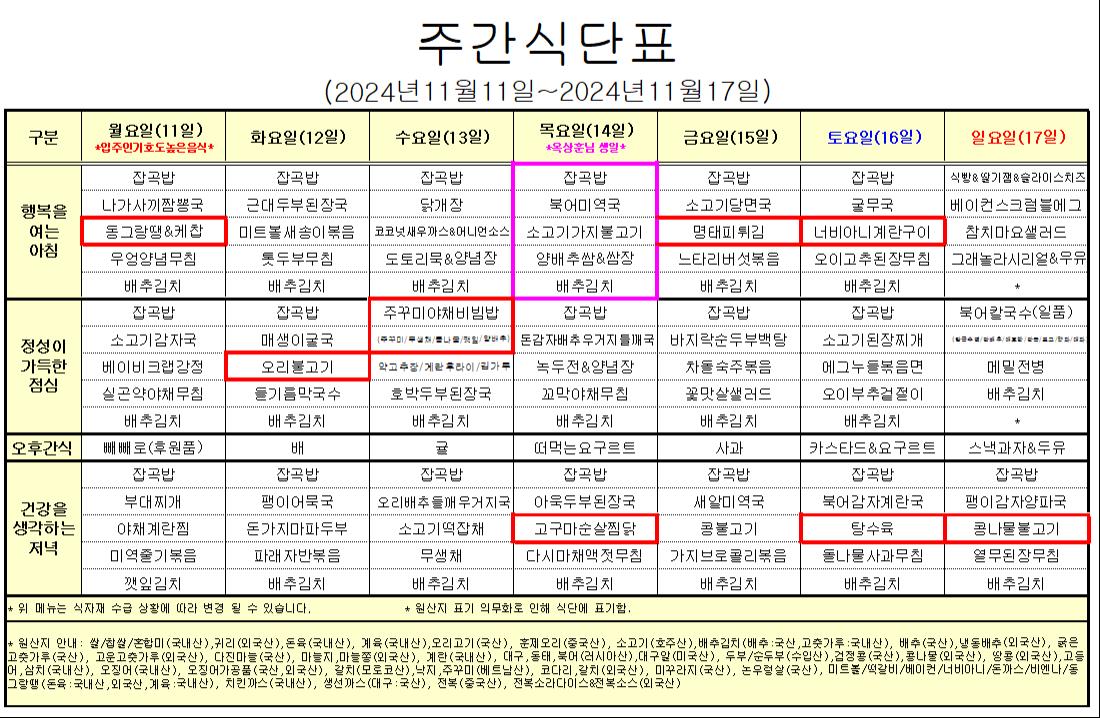 11¿ù 2°ÁÖ ½Ä´ÜÇ¥ÀÔ´Ï´Ù.