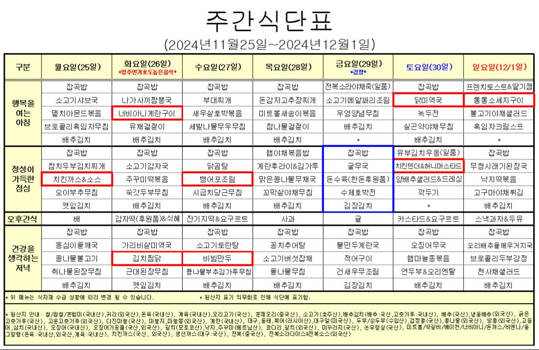 11¿ù 4°ÁÖ ½Ä´ÜÇ¥ÀÔ´Ï´Ù.