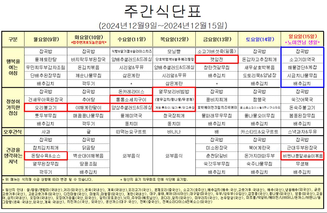 12¿ù 2°ÁÖ ½Ä´ÜÇ¥ÀÔ´Ï´Ù.