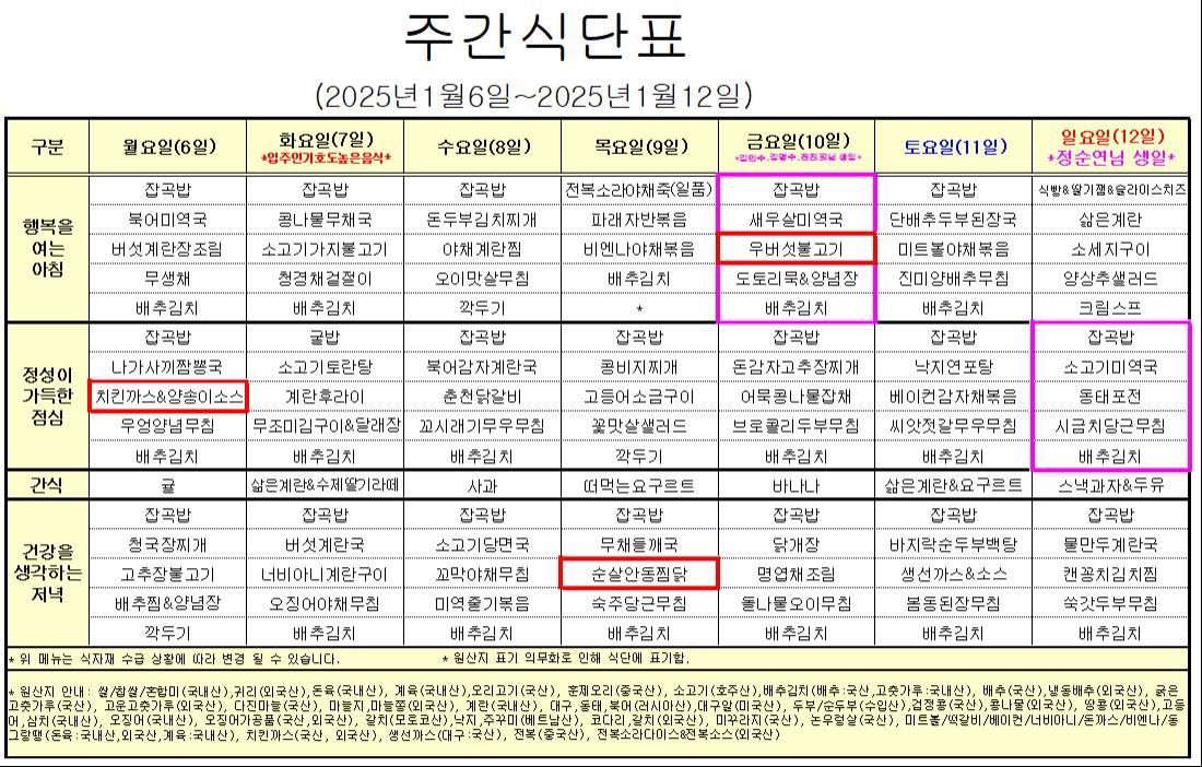 1¿ù 2°ÁÖ ½Ä´ÜÇ¥ ÀÔ´Ï´Ù.