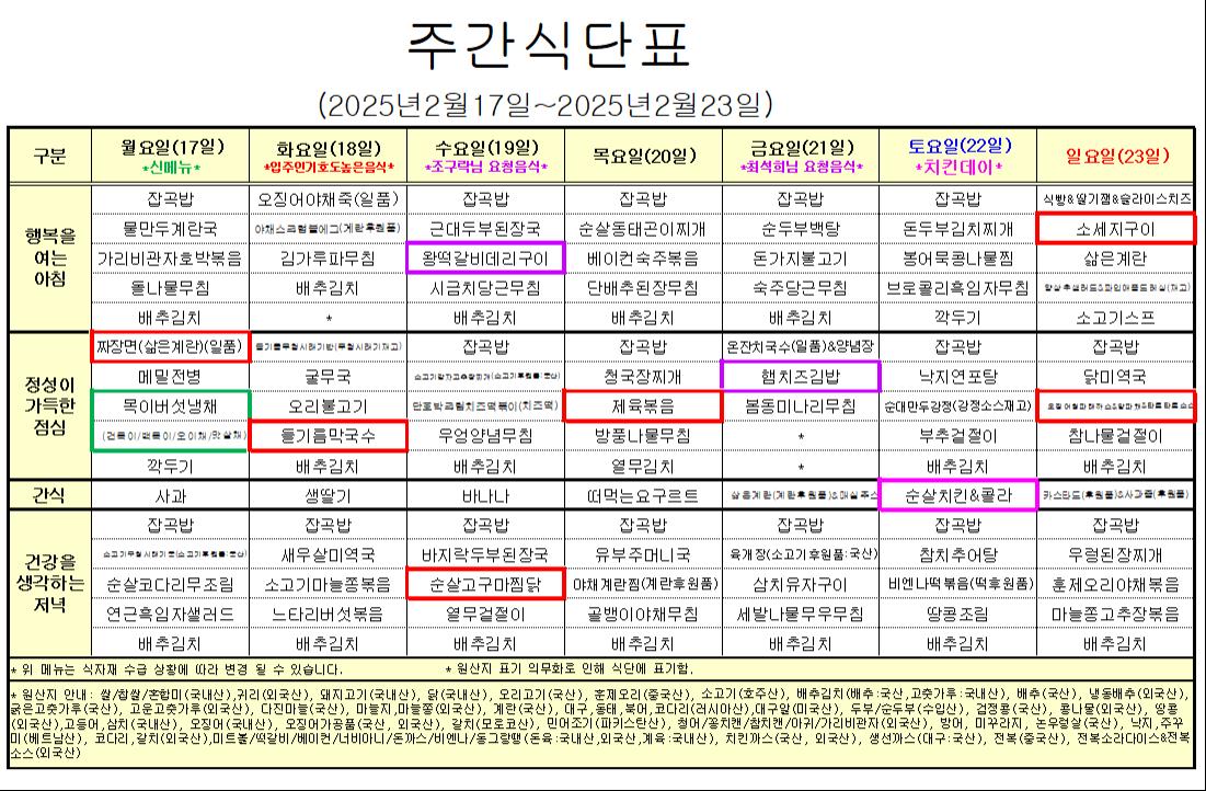 2¿ù 3°ÁÖ ½Ä´ÜÇ¥ÀÔ´Ï´Ù.