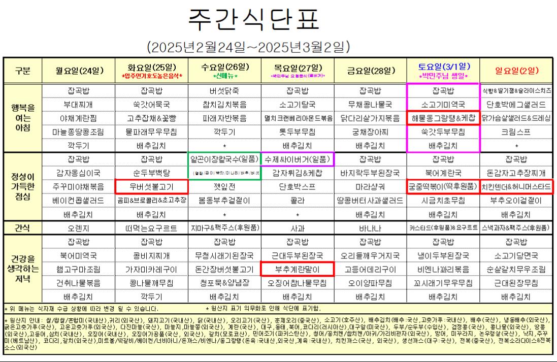 2¿ù 4°ÁÖ ½Ä´ÜÇ¥ÀÔ´Ï´Ù.