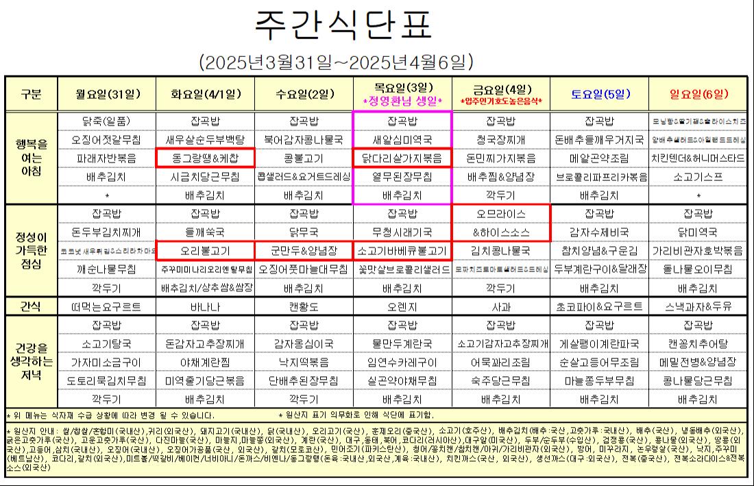 4¿ù 1°ÁÖ ½Ä´ÜÇ¥ ÀÔ´Ï´Ù.