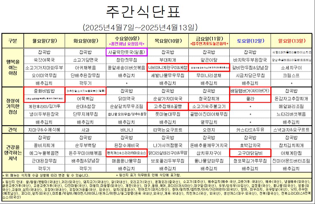 4¿ù 2°ÁÖ ½Ä´ÜÇ¥ ÀÔ´Ï´Ù.