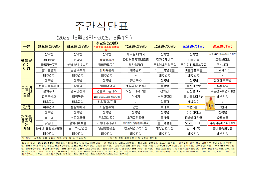5¿ù 4°ÁÖ ½Ä´ÜÇ¥ ÀÔ´Ï´Ù.