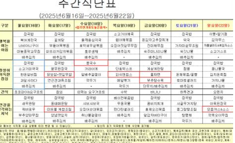 6¿ù 3°ÁÖ ½Ä´ÜÇ¥ ÀÔ´Ï´Ù.