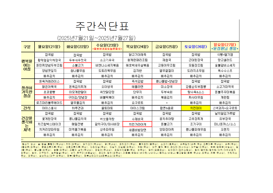 7¿ù4°ÁÖ ½Ä´ÜÇ¥ ÀÔ´Ï´Ù.