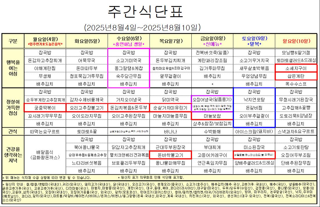 8¿ù 1°ÁÖ ½Ä´ÜÇ¥ ÀÔ´Ï´Ù.