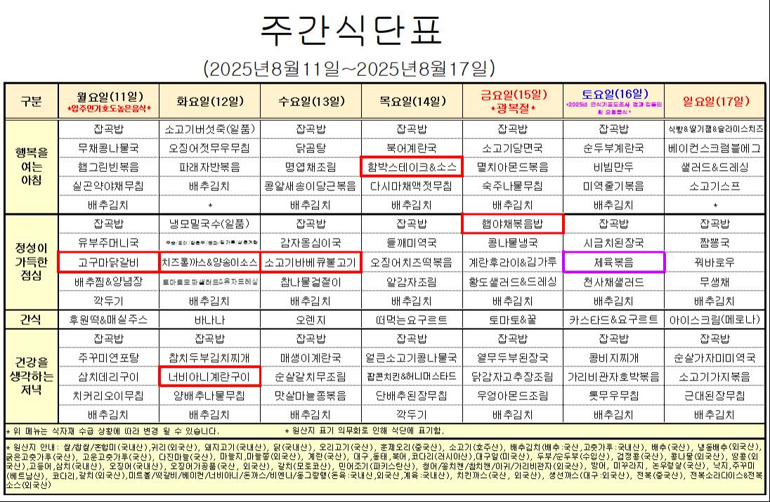 8¿ù 2°ÁÖ ½Ä´ÜÇ¥ ÀÔ´Ï´Ù.