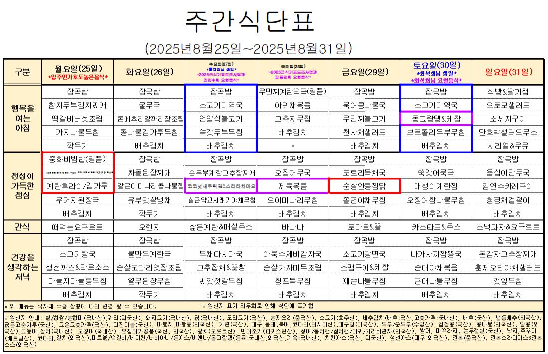 8¿ù 4°ÁÖ ½Ä´ÜÇ¥ÀÔ´Ï´Ù.