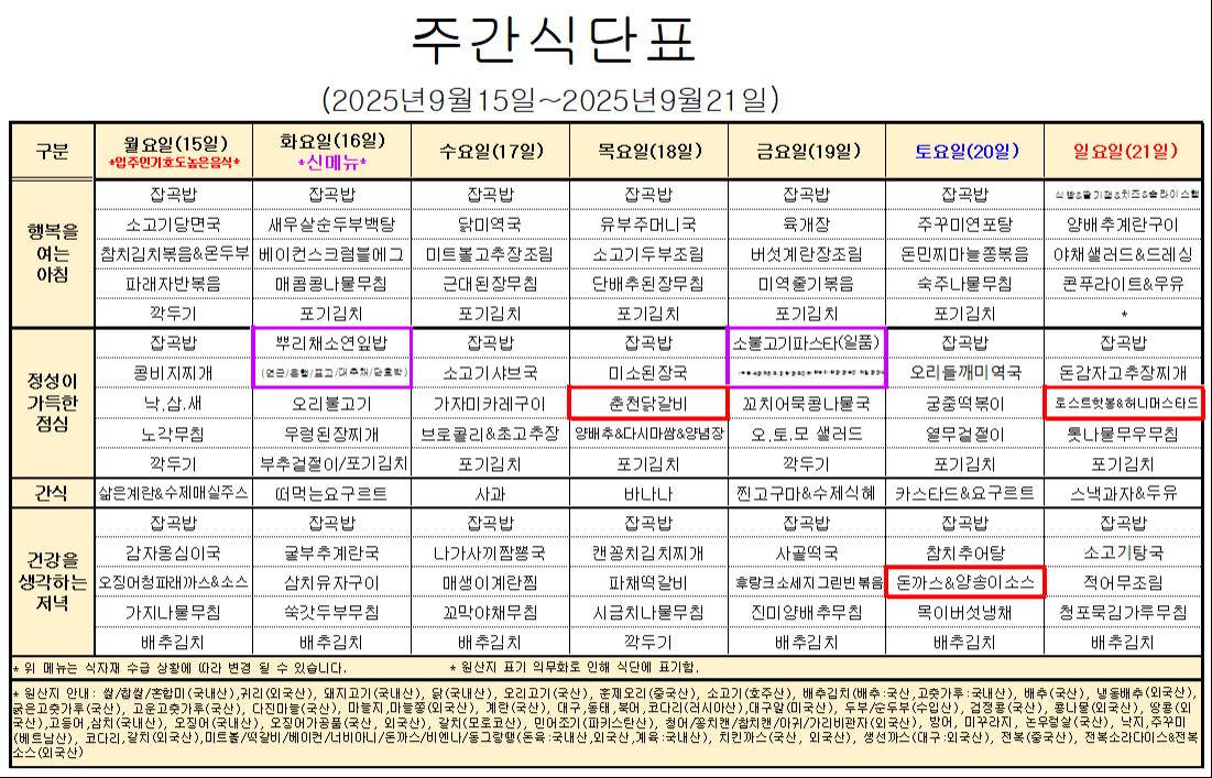9¿ù 3°ÁÖ ½Ä´ÜÇ¥ ÀÔ´Ï´Ù.