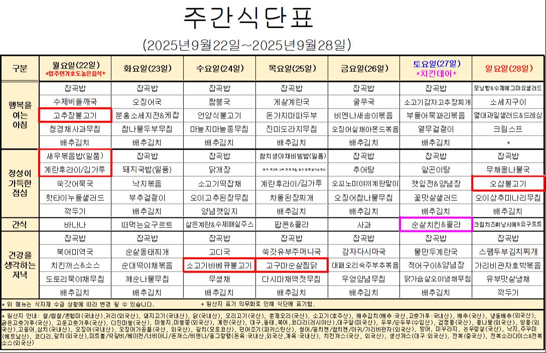 9¿ù 4°ÁÖ ½Ä´ÜÇ¥ ÀÔ´Ï´Ù.