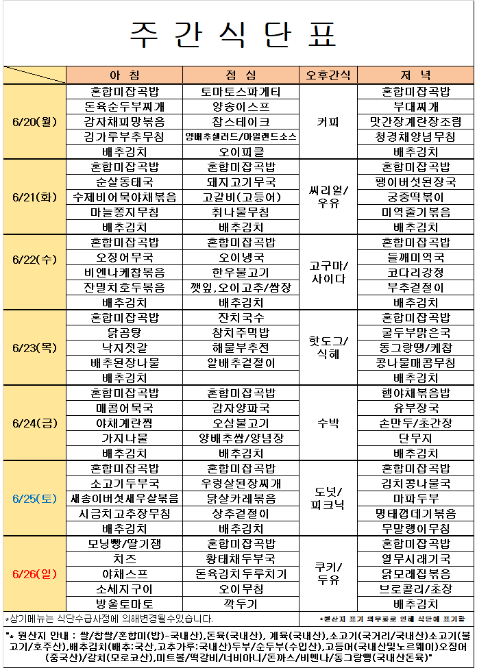 6¿ù 4°ÁÖ ½Ä´ÜÇ¥ÀÔ´Ï´Ù.