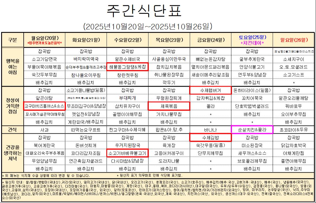 10¿ù 4°ÁÖ ½Ä´ÜÇ¥ÀÔ´Ï´Ù.
