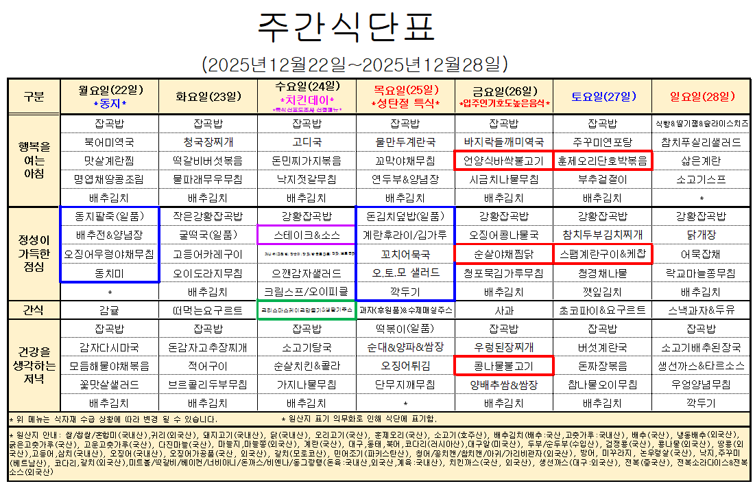 12¿ù 4°ÁÖ ½Ä´ÜÇ¥ÀÔ´Ï´Ù.