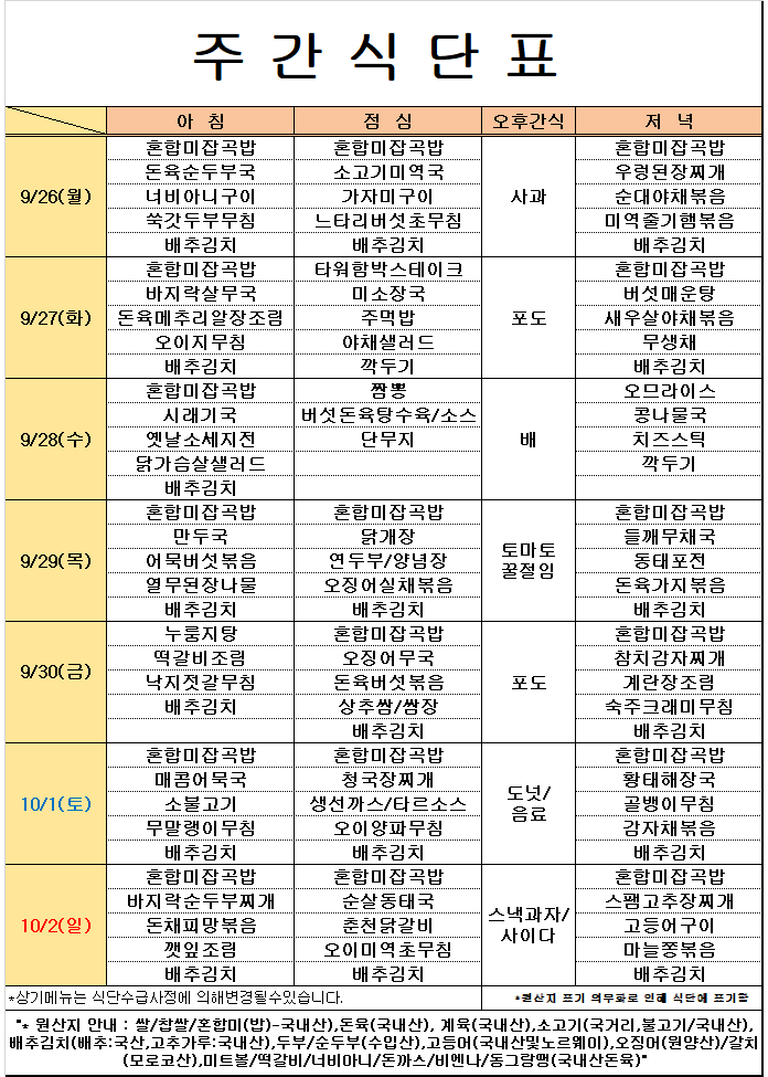 9¿ù5°ÁÖ ½Ä´ÜÇ¥ÀÔ´Ï´Ù.