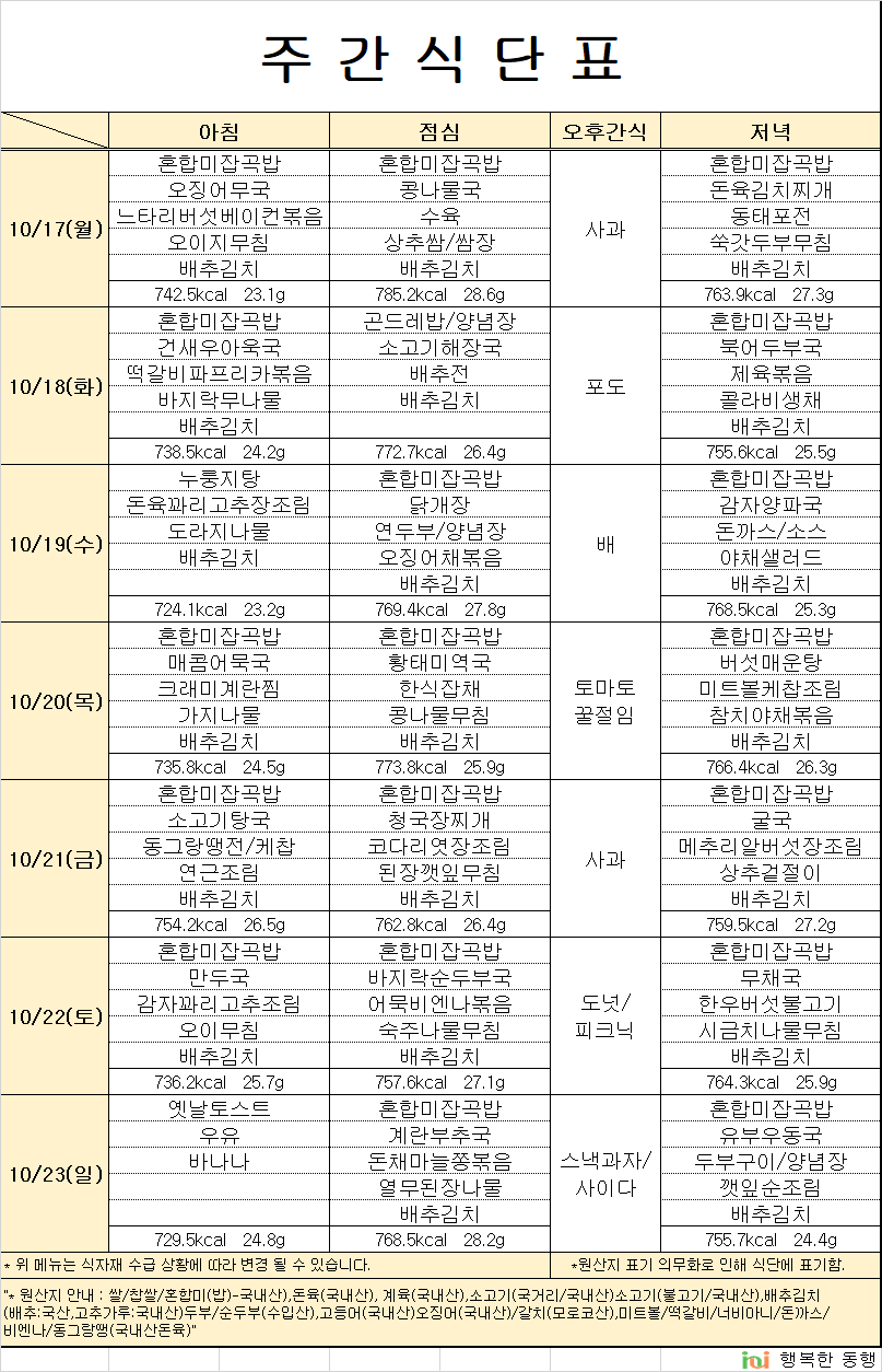 10¿ù3°ÁÖ ½Ä´ÜÇ¥ÀÔ´Ï´Ù.