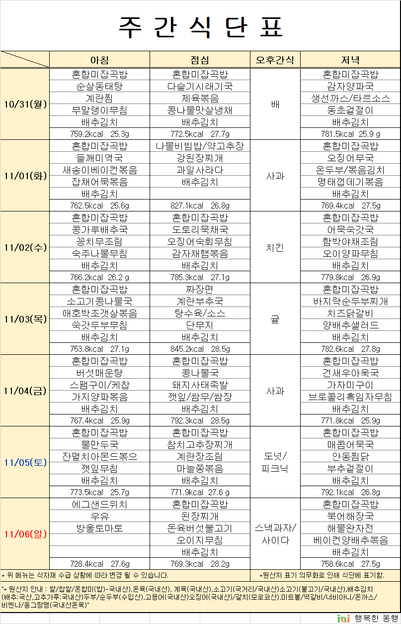 11¿ù1°ÁÖ ½Ä´ÜÇ¥ÀÔ´Ï´Ù.