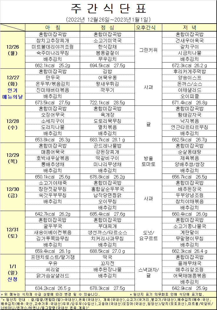 12¿ù ¸¶Áö¸·ÁÖ ½Ä´ÜÇ¥ÀÔ´Ï´Ù.