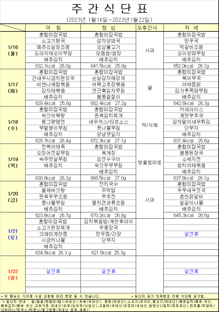 1¿ù3°ÁÖ ½Ä´ÜÇ¥ÀÔ´Ï´Ù.