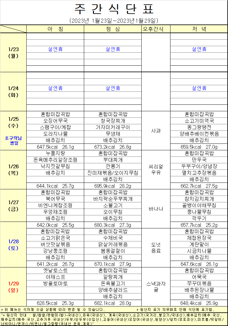 1¿ù4°ÁÖ ½Ä´ÜÇ¥