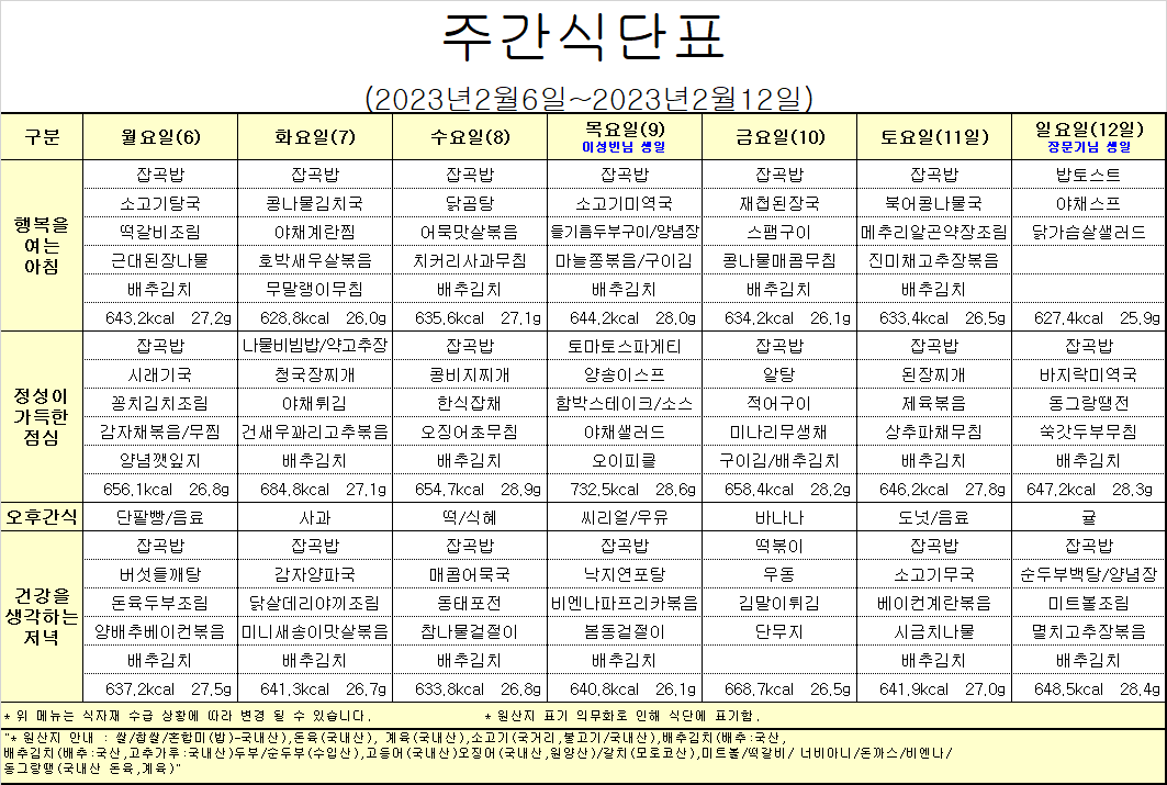 2¿ù2°ÁÖ ½Ä´ÜÇ¥ÀÔ´Ï´Ù.