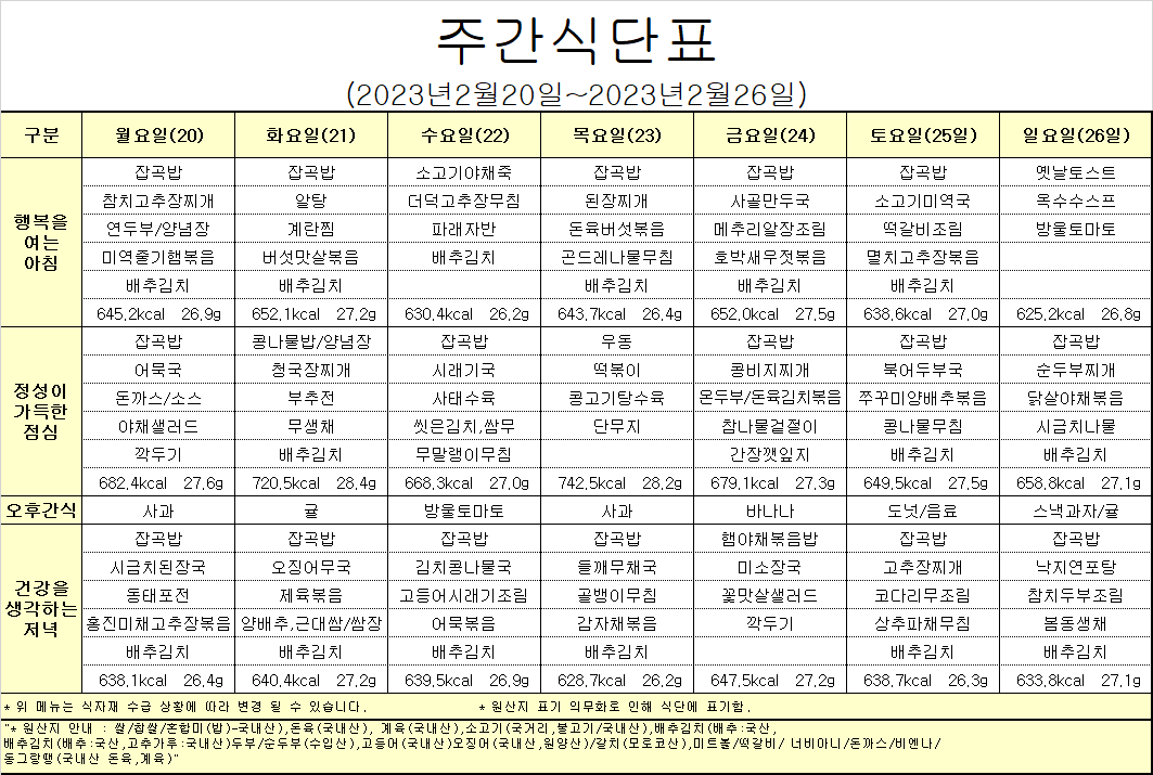 2¿ù4°ÁÖ ½Ä´ÜÇ¥ÀÔ´Ï´Ù.